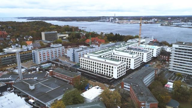 Lyubek shahridagi kampus yashil hudud bilan o‘ralgan va shahar markazidan atigi besh kilometr uzoqlikda joylashgan. 72 gektar maydonda 1200 o‘rinli 613 bemor palatasi mavjud. Ganza shahri Lyubekda an’ana va zamonaviylik uyg‘unlashgan. Mashhur Holstentor darvozalari (YuNESKO merosi) shaharning ramzidir. 220 ming aholiga ega Lyubek kichik universitet shahri bo‘lib, bu yerda deyarli hamma joyga piyoda yoki velosipedda tezda yetib borish mumkin. Poyezdda atigi 40 daqiqada dunyo bilan qulay aviayo‘llarga ega millionlab aholiga ega Gamburgga yetib boriladi. Ishdan keyin ko‘pchilik odamlar oroldagi qadimiy shahar ko‘chalarida sayr qiladi, ovqatlanadi yoki ko‘plab madaniy tadbirlardan bahramand bo‘ladi.